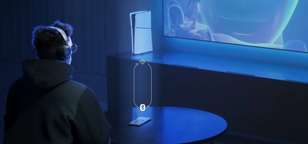 Könnyen fogadhat hívásokat játék közben, és egyetlen gombnyomással válthat nagy sebességű 2,4 GHz-es Bluetooth 5.3-ra. A mobilkapcsolatok készenlétben maradnak, amikor ismét működésbe lép, így fogadni fog hívásokat. Tartsa Fortnite EQ-ját 2,4 GHz-es sávszélességen anélkül, hogy befolyásolná az adott Bluetooth audio médiaprofilokat.